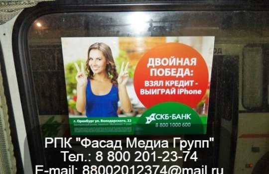 06.04.2022 г. Размещение рекламы на стикерах в общественном транспорте для СКБ-БАНК