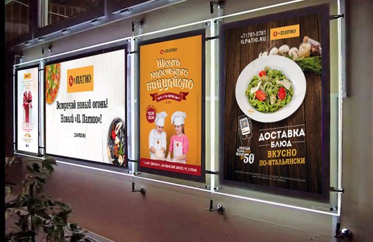Примеры наших работ при размещении рекламы в кафе представлены ниже: